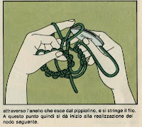 Fate il primo nodo seguendo le figure 9 e 10, sempre a distanza di circa 30 cm dall'inizio del filo. Bloccatelo con l'indice della mano destra e continuate finché non avrete memorizzato bene il procedimento.